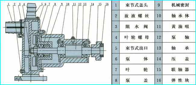 三、JMZ型不銹鋼自吸泵(酒泵)結(jié)構(gòu)圖: