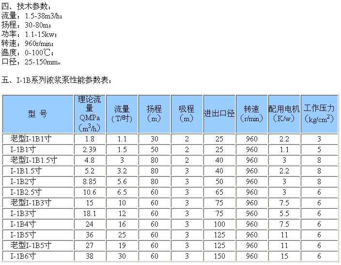 I-1BB型:殼體鑄件,傳動件(主軸、螺桿和繞軸)為2Cr13不銹鋼制造,適用于一般中性濃漿液輸送,一般微酸、堿漿液輸送。