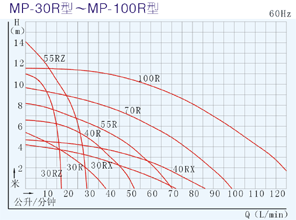 MP型磁力驅動循環泵|結構圖尺寸圖MP系列磁力驅動循環泵曲線圖: