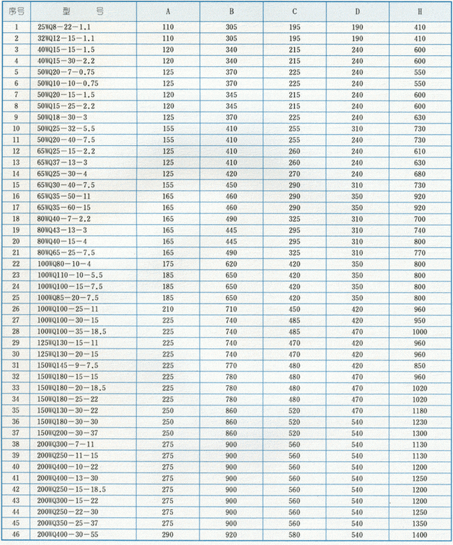 導(dǎo)航:回首頁(yè)---當(dāng)前位置---水泵產(chǎn)品內(nèi)容頁(yè)補(bǔ)充頁(yè) >> WQ型無(wú)堵塞潛水排污泵外形安裝尺寸 |