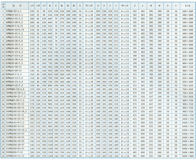 導航:回首頁---當前位置---水泵產品內容頁補充頁 >> WQ型無堵塞潛水排污泵外形安裝尺寸 |