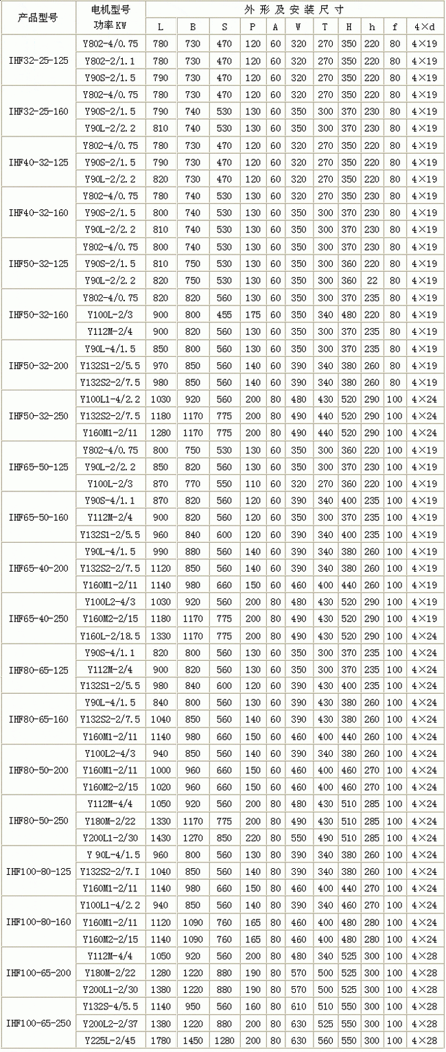 IHF型氟塑料合金離心泵|外形尺寸IHF型氟塑料合金離心泵外形尺寸圖: