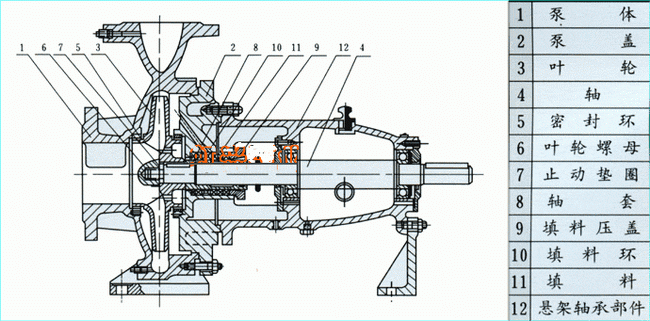 IS、IR型單級單吸離心泵結構圖:
