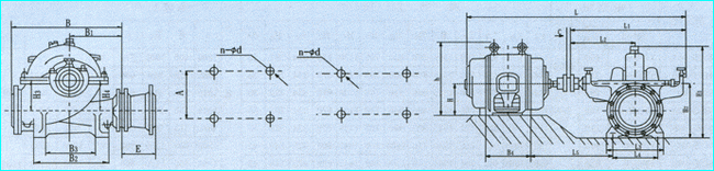 S、SH型單級(jí)雙吸泵|外形安裝尺寸(2)S、SH型單級(jí)雙吸泵外形安裝尺寸圖: