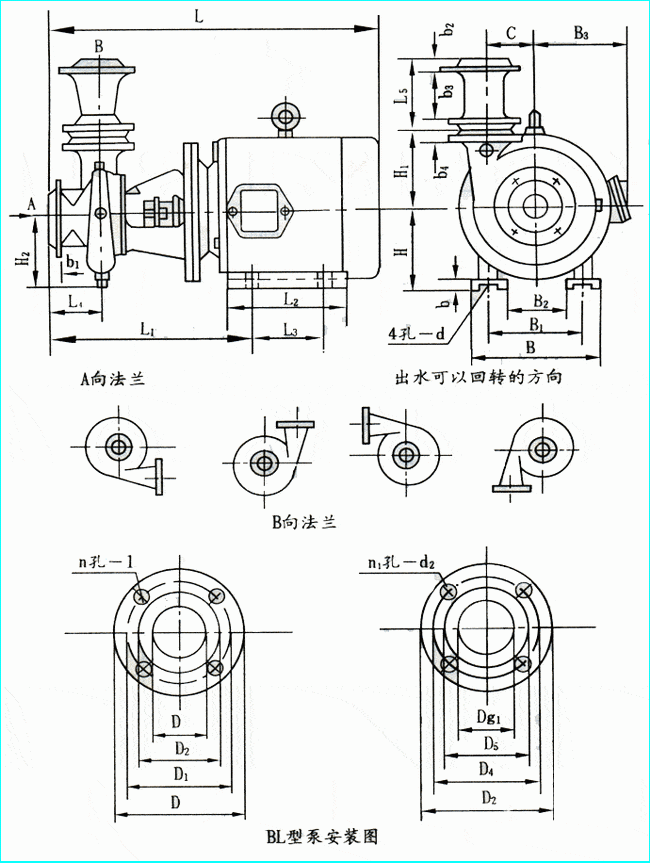 導(dǎo)航:回首頁---當(dāng)前位置---水泵產(chǎn)品內(nèi)容頁補充頁 >> BL型單級臥式離心泵外形安裝尺寸 |
