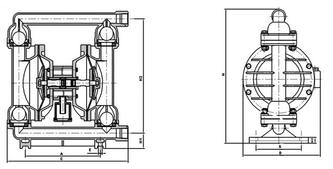 QBK型氣動隔膜泵外形尺寸與結構圖![]()