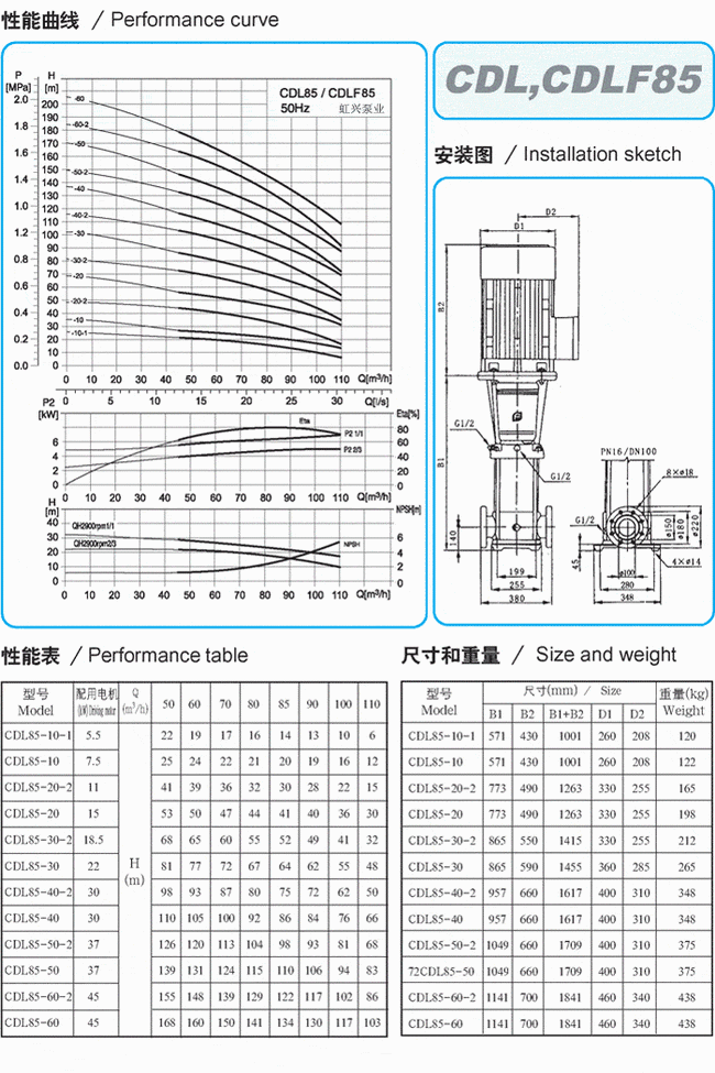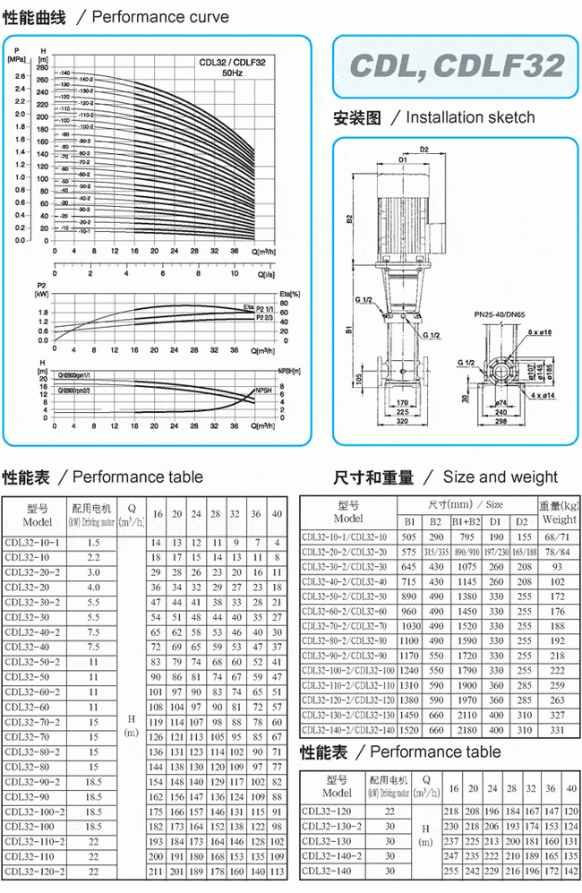 CDLF系列輕型不銹鋼立式多級泵性能參數表(2)![]() ![]() ![]()