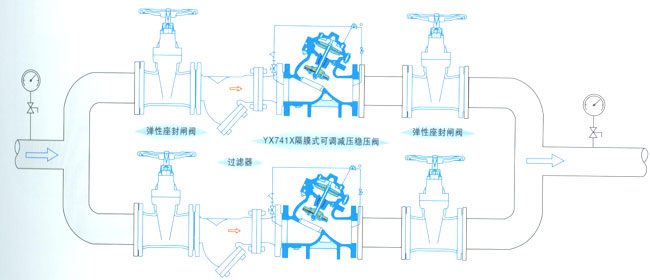 Yx741X隔膜可調式減壓穩壓閥的基本構造 Yx741X隔膜可調式減壓穩壓閥安裝注意事項